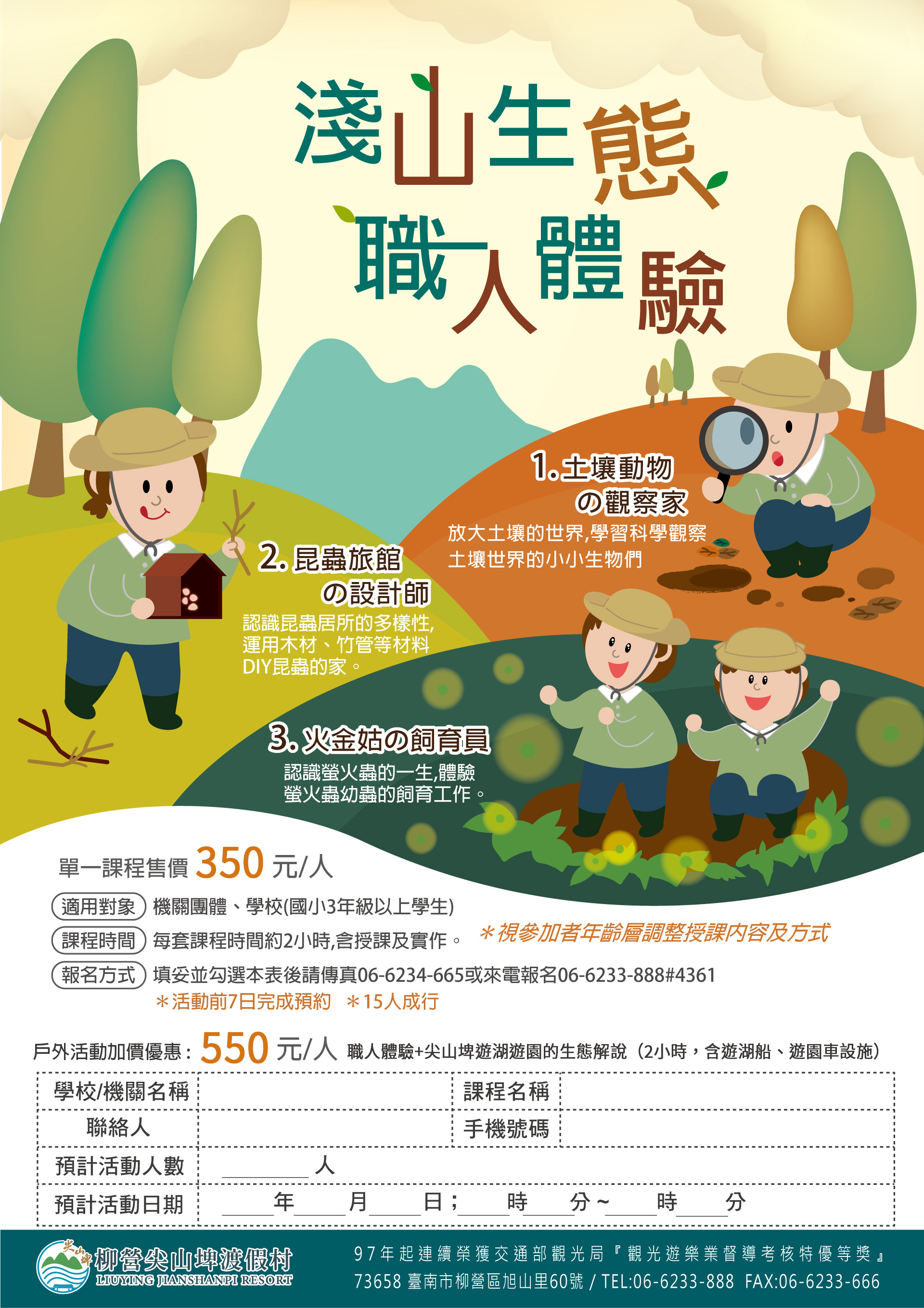 三、目前柳營尖山埤渡假村開設之環境教育認證課程方案(詳 附件1),